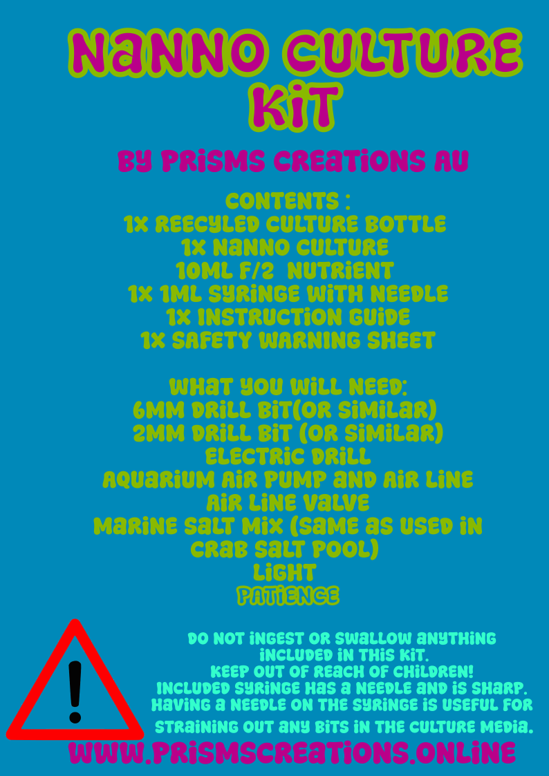 INTRODUCING OUR LIVE NANNO CULTURE KIT. THE PERFECT SOLUTION FOR LIVE FEEDING ZOEA OR ADDING LIFE TO YOUR SALT WATER CRAB POOL.